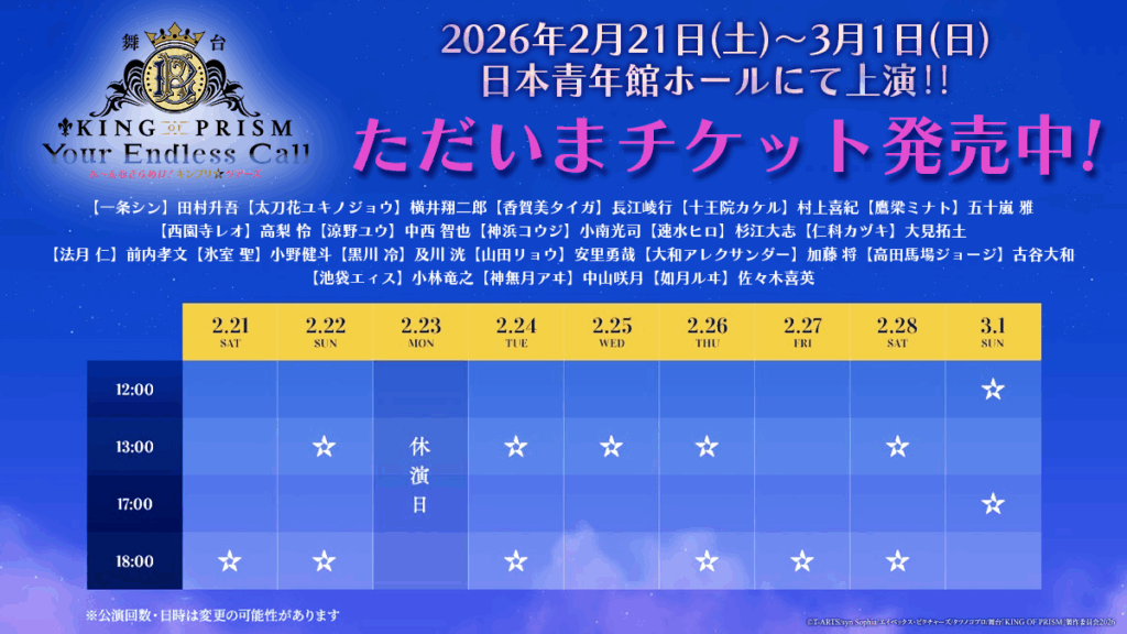 舞台「KING OF PRISM-Your Endless Call-み~んなきらめけ!キンプリ☆ツアーズ」出演決定